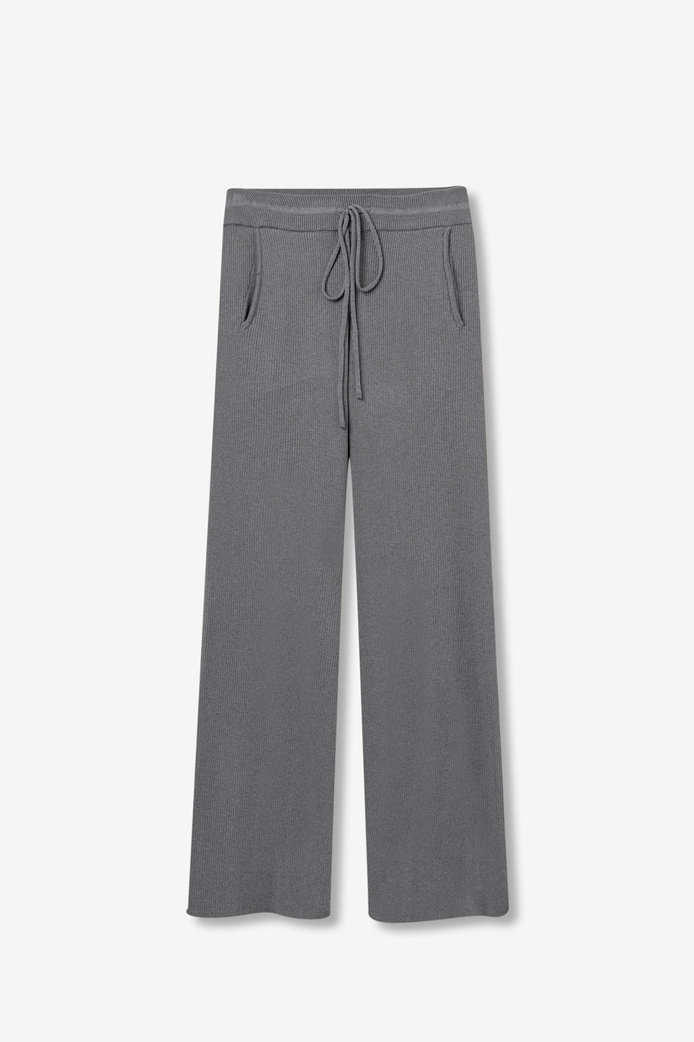 Pantalones straight de punto canalé con cordón en la cintura.58% VISCOSE 29% POLYESTER 13% POLYAMIDE