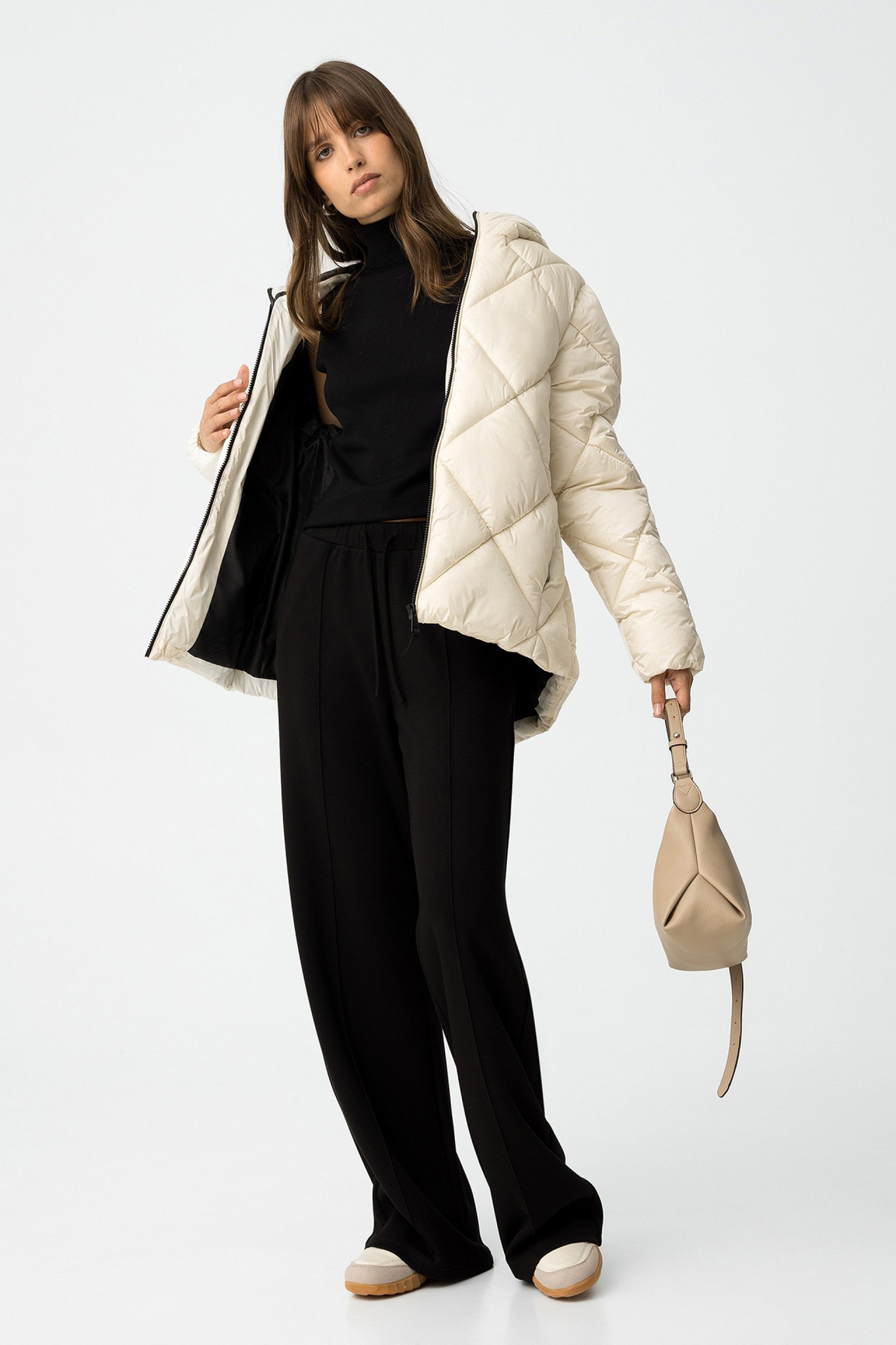 Pantalones de punto de pierna ancha con dos bolsillos y costuras frontales. Cintura alta elástica con cordón incorporado. Queda genial con nuestra chaqueta BLACK.