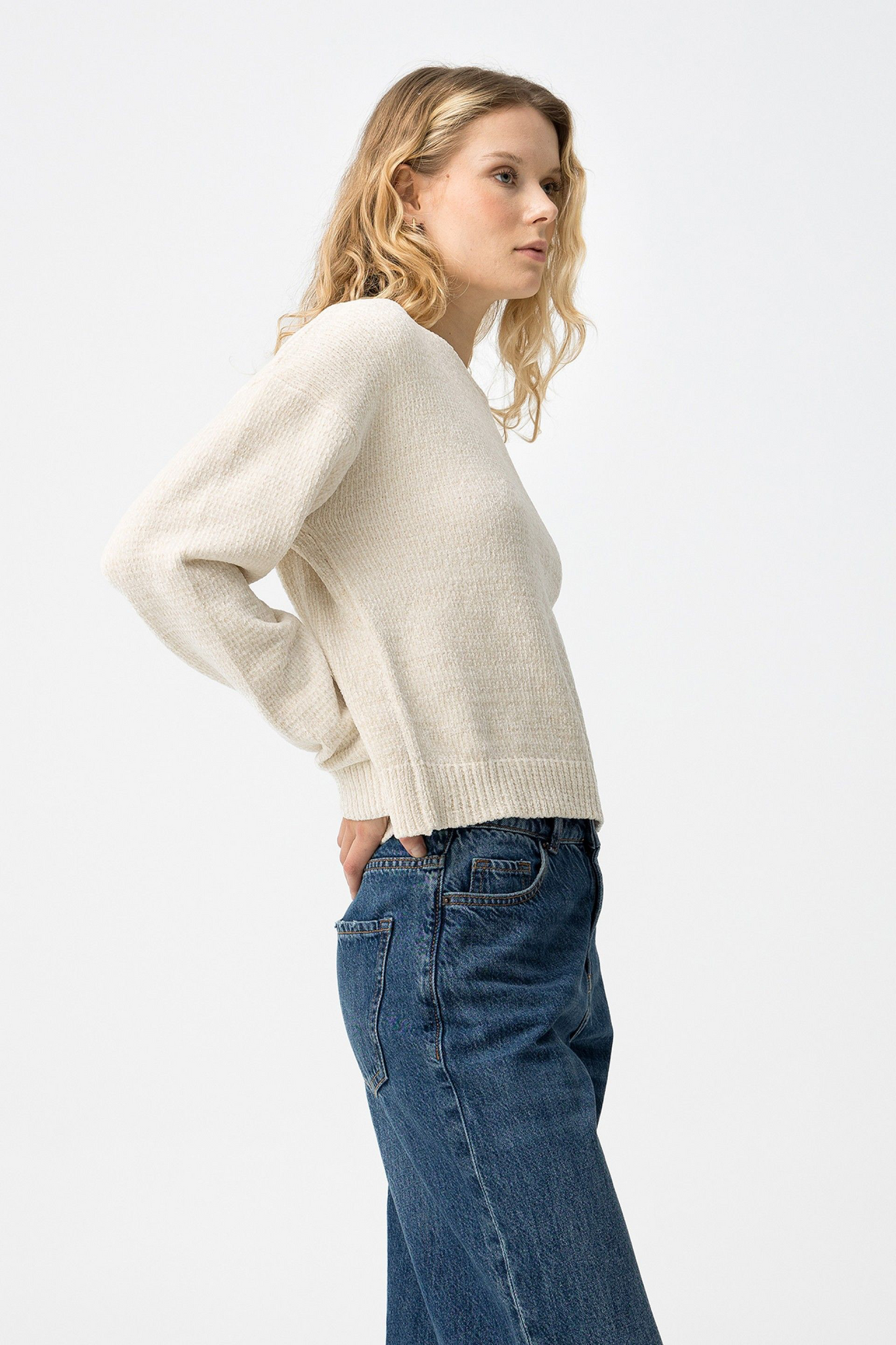 Jersey de manga larga y cuello redondo. Color blanco roto. Tacto muy suave.