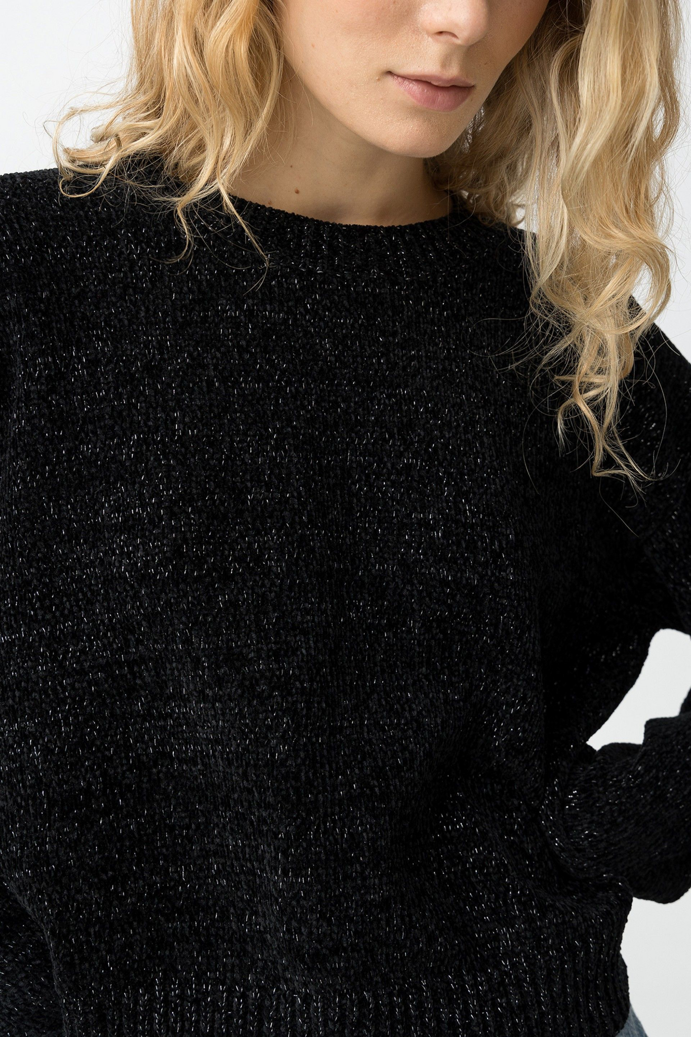 Jersey de punto de manga larga y cuello redondo. Color negro con detalle de hilo metalizado.