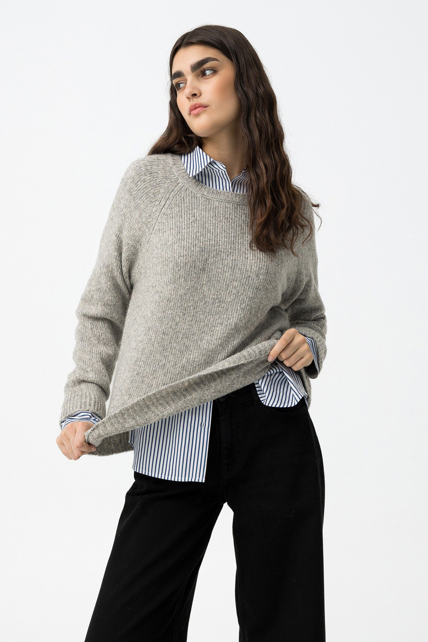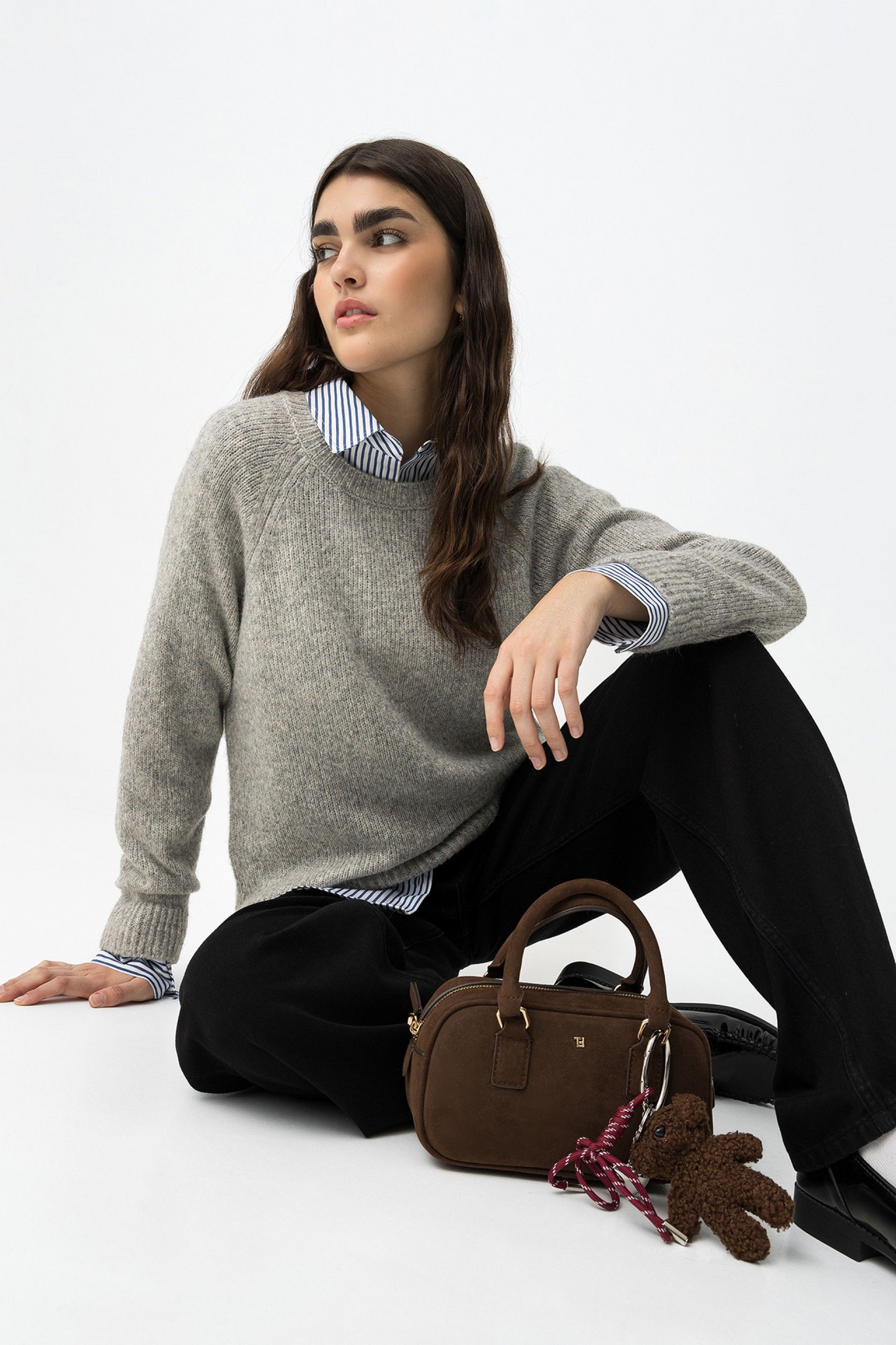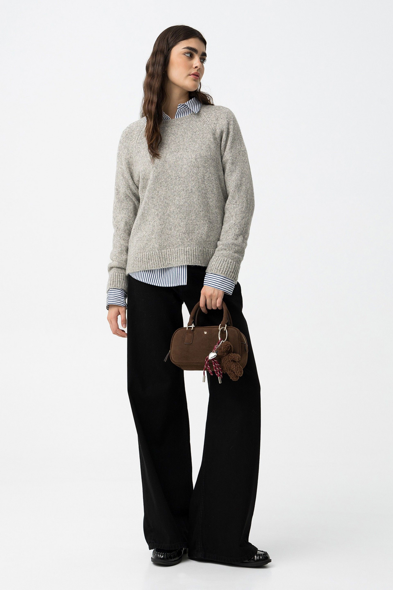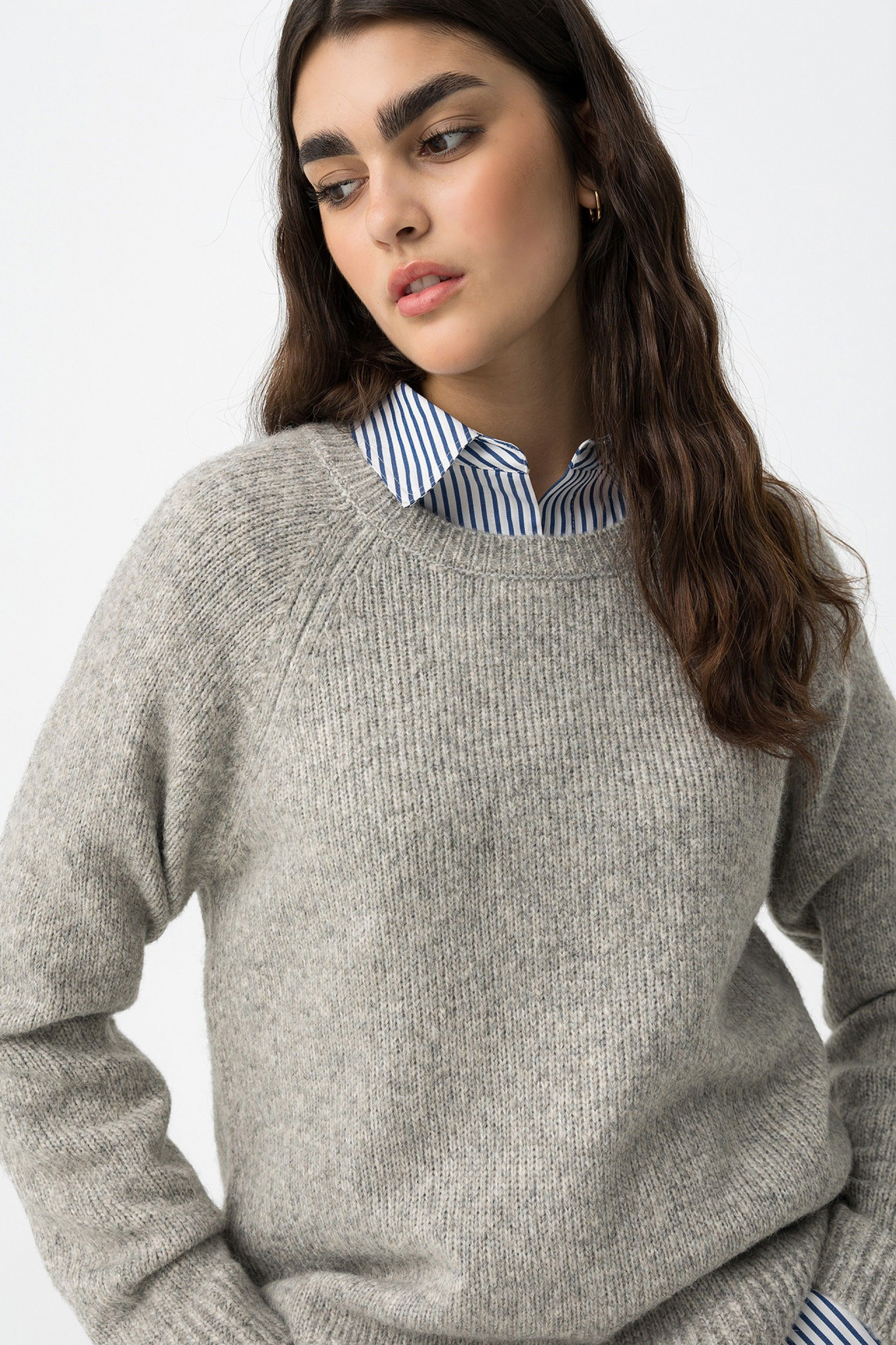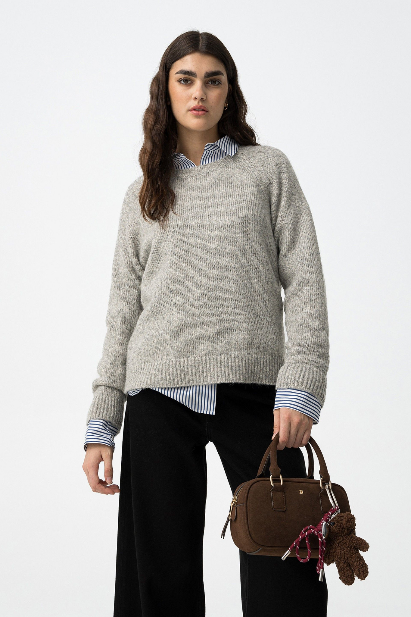Jersey de punto con cuello redondo y mangas raglán. Puños y bajo en rib.