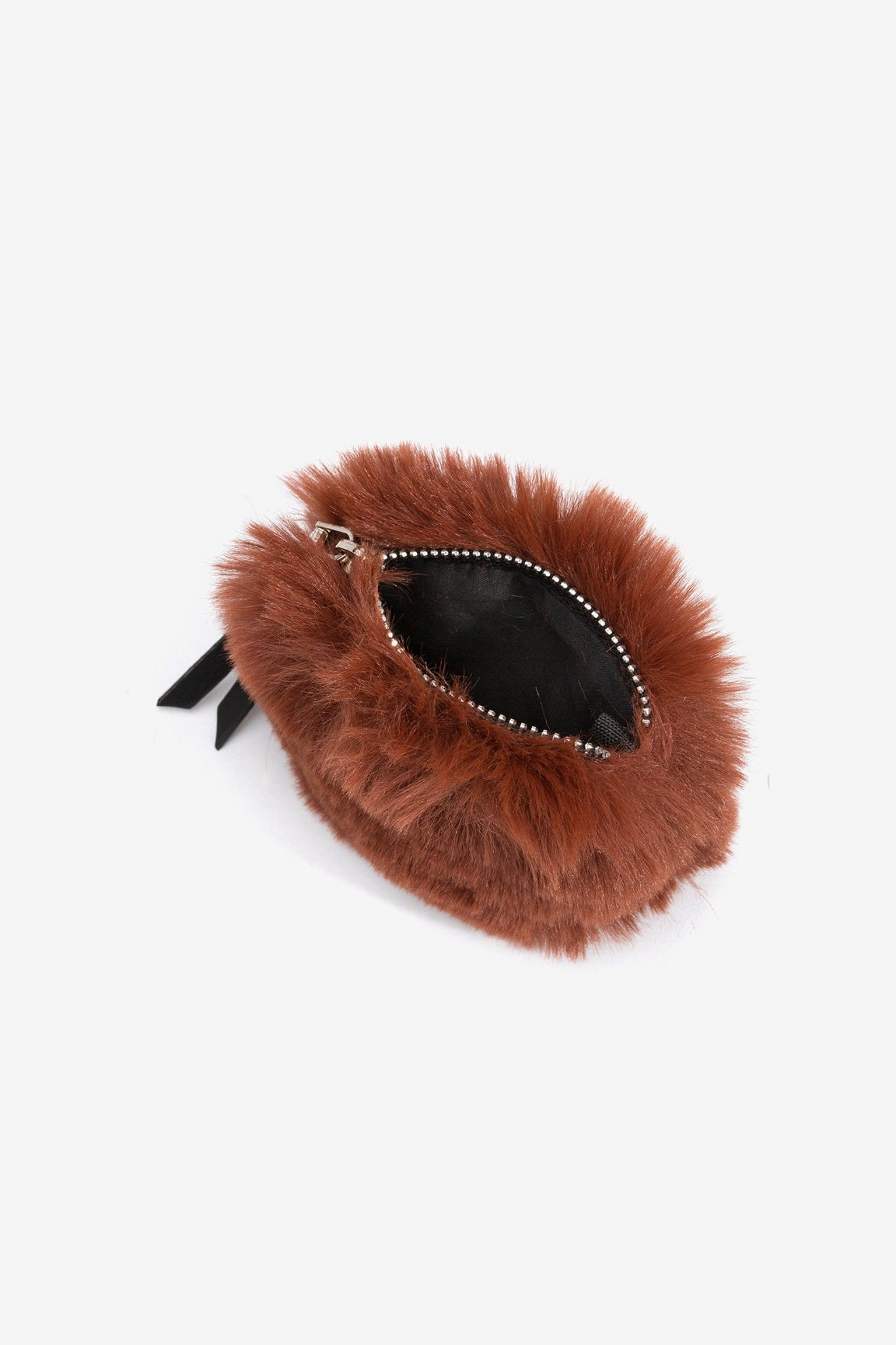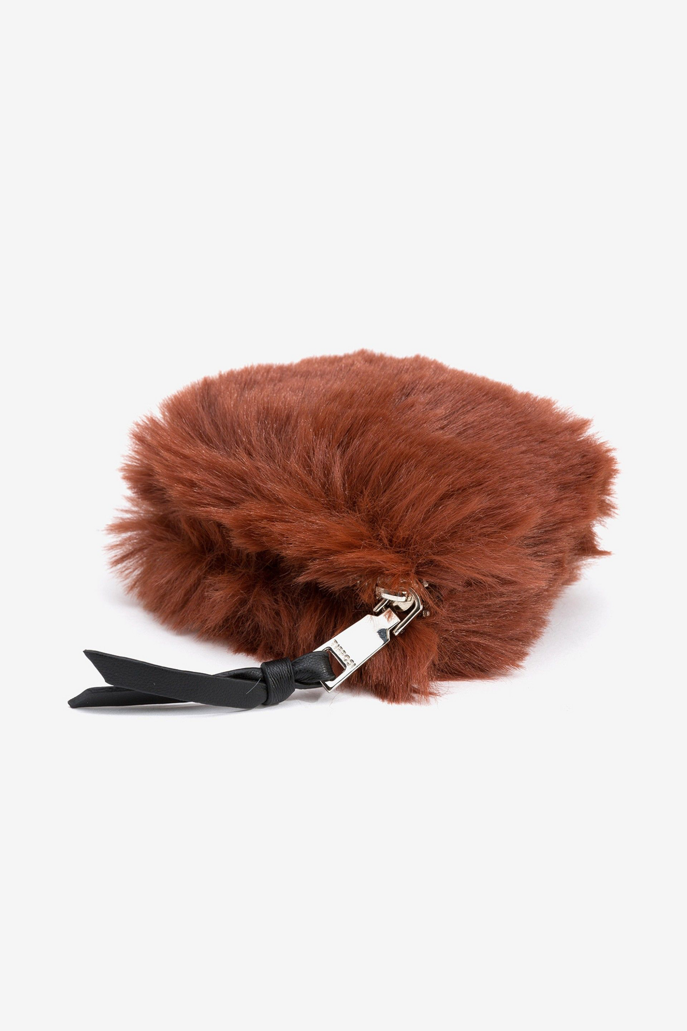 Bolsito de efecto peluche con cierre de cremallera superior y detalle de efecto piel.100% POLYESTER